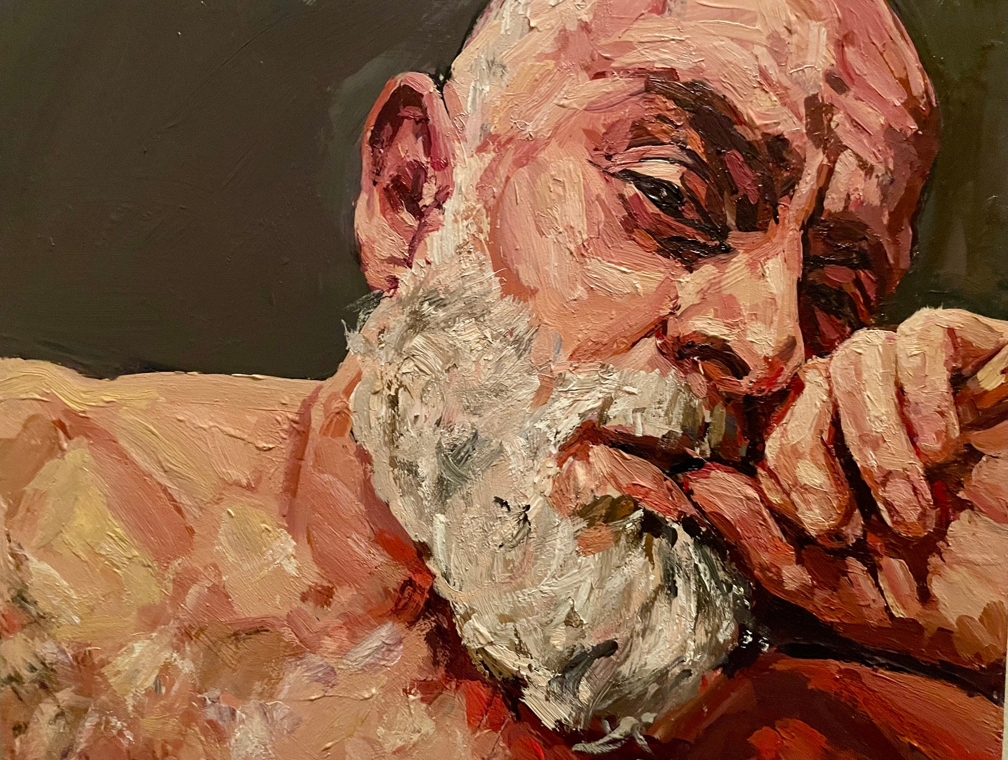 Small Acrylic painting on board Head and shoulders portrait in profile 20cm x 25cm Framed in black wood frame