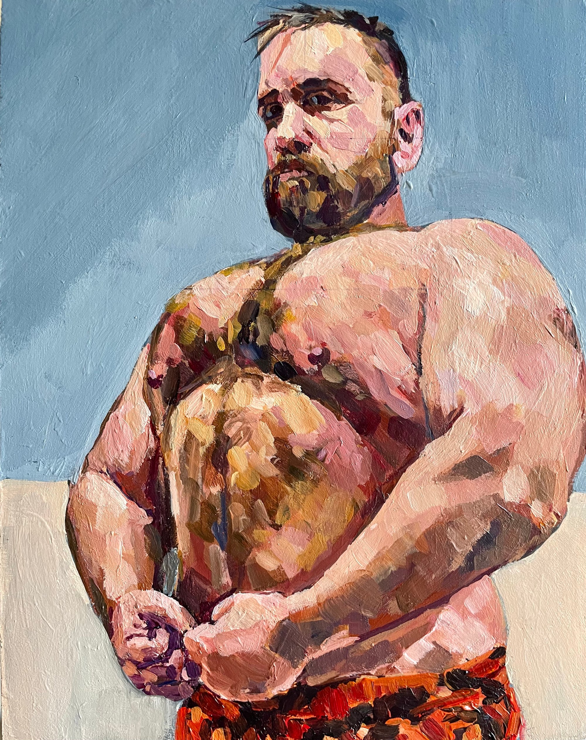 Small Acrylic painting on board portrait in three quarter profile of a body buikder 25cm x 20cm Unframed